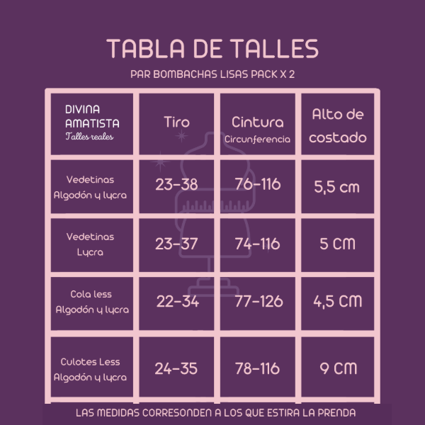La Tabla de medidas esta en las fotos de la publicación, y también en la sección de Información de la tienda
